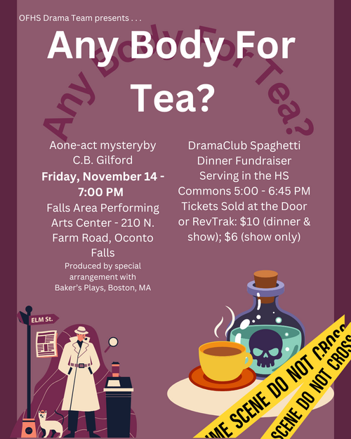 Join us on Friday, November 14, at 7:00 PM for dinner and a show at the Oconto Falls Performing Arts Center! The OFHS Drama Team will perform a one-act mystery ...